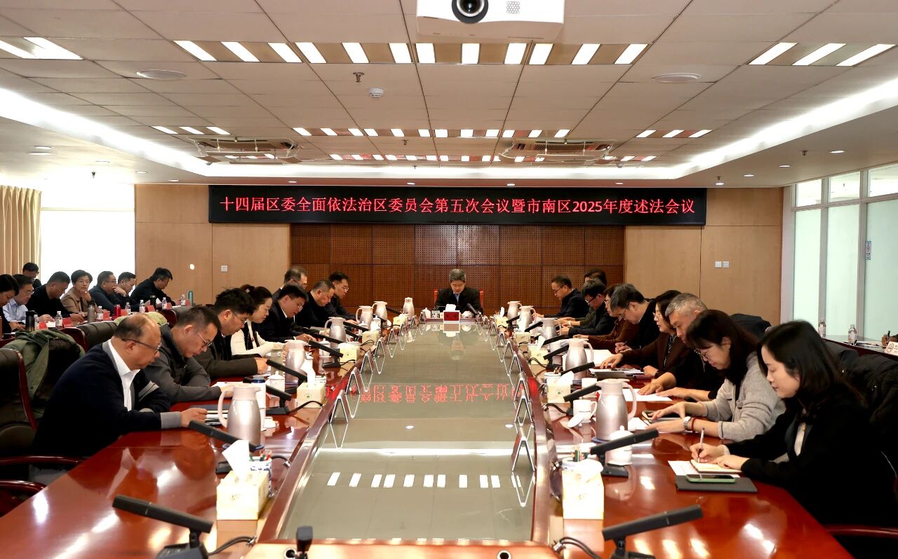 12月3日,十四屆區(qū)委全面依法治區(qū)委員會第五次會議暨市南區(qū)2025年度述法會議召開。區(qū)委書記、區(qū)委全面依法治區(qū)委員會主任王鋒同志主持會議并講話。區(qū)委全面依法治區(qū)委員會副主任、委員出席會議,述法相關單位主要負責同志、述法評議員列席會議。