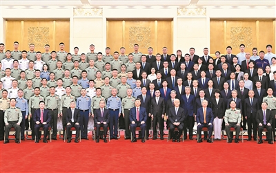 17日上午,人民大會(huì)堂北大廳氣氛熱烈。10時(shí)許,習(xí)近平等來到這里,全場(chǎng)響起熱烈掌聲。習(xí)近平等同大家親切握手,并合影留念。