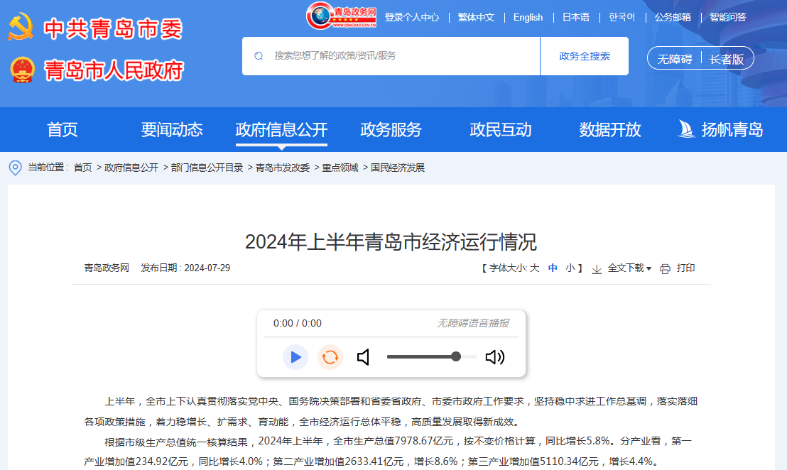今年以來,全市上下堅(jiān)持以習(xí)近平新時(shí)代中國特色社會(huì)主義思想為指導(dǎo),認(rèn)真貫徹落實(shí)習(xí)近平總書記視察山東重要講話精神和中央、省市經(jīng)濟(jì)工作會(huì)議部署,堅(jiān)持穩(wěn)中求進(jìn)、以進(jìn)促穩(wěn)、先立后破,以扎實(shí)舉措擴(kuò)需求、穩(wěn)增長、提質(zhì)效,全市經(jīng)濟(jì)穩(wěn)健向好、進(jìn)中提質(zhì)。上半年,全市實(shí)現(xiàn)地區(qū)生產(chǎn)總值7978.67億元,同比增長5.8%,增速高于全國0.8個(gè)百分點(diǎn),列副省級(jí)城市第三位,為實(shí)現(xiàn)全年目標(biāo)打下堅(jiān)實(shí)基礎(chǔ),努力在現(xiàn)代化強(qiáng)省建設(shè)中打頭陣、當(dāng)先鋒,奮力推進(jìn)中國式現(xiàn)代化青島實(shí)踐。
