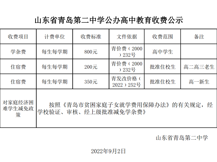 022年山東省青島第二中學(xué)公辦高中教育收費(fèi)公示.pdf