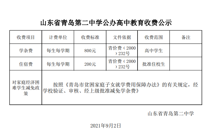 2021年山東省青島第二中學公辦高中教育收費公示.pdf