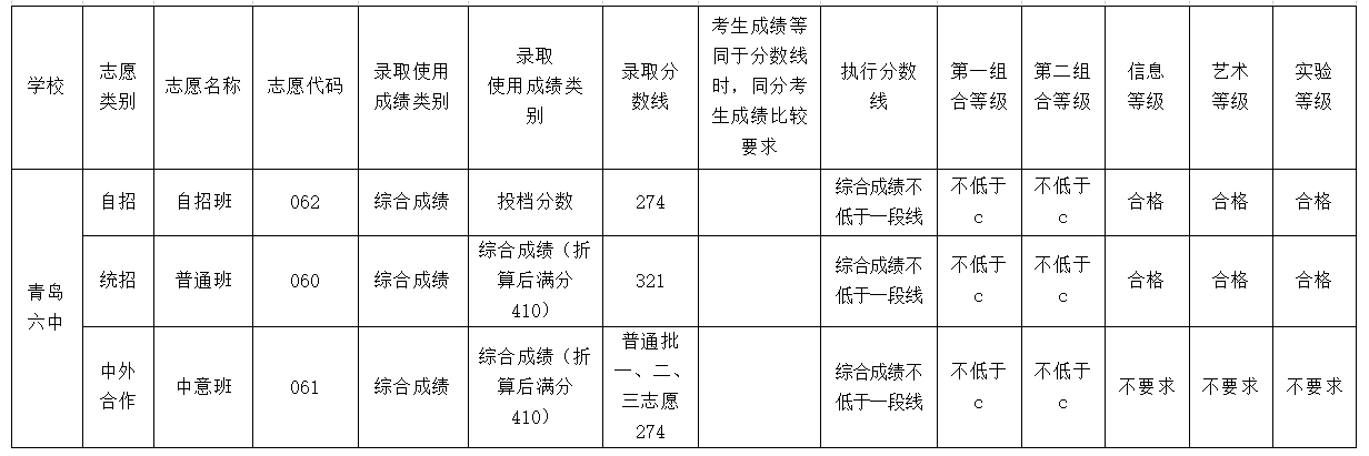 山東省青島第六中學(xué)2023年招生錄取分?jǐn)?shù)線