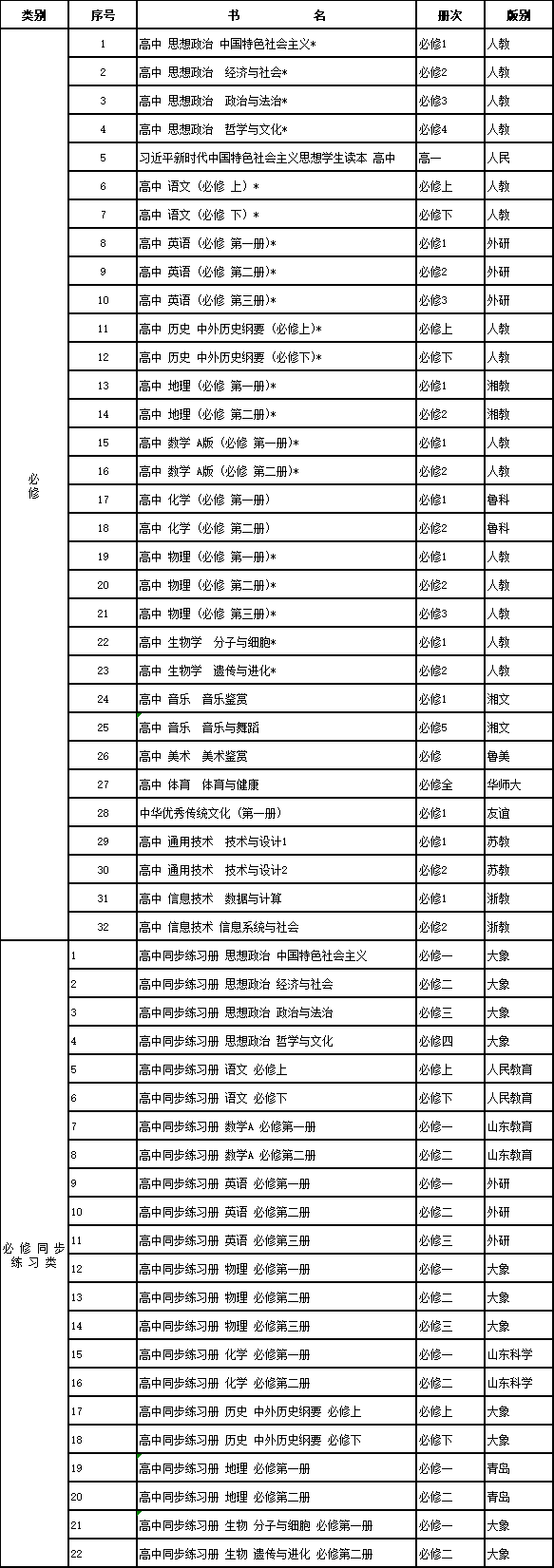 青島市2022學(xué)年秋季普通高中教育教學(xué)用書目錄 (根據(jù)2017年版課程標(biāo)準(zhǔn)修訂)