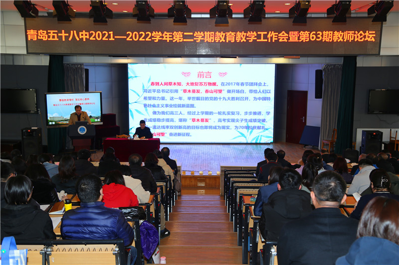 2022年3月3日,2021—2022學(xué)年第二學(xué)期教育教學(xué)工作會暨第63期教師論壇在報告廳隆重舉行。本次會議的主題是“厚植教育情懷 落實核心素養(yǎng)”。會議由紀煒副校長主持,全體教職工參會。在第63期教師論壇上,有四位一線教師代表依次發(fā)言,他們視野開闊,格局宏大,為大家?guī)砹司始姵实木袷⒀纭?/span>