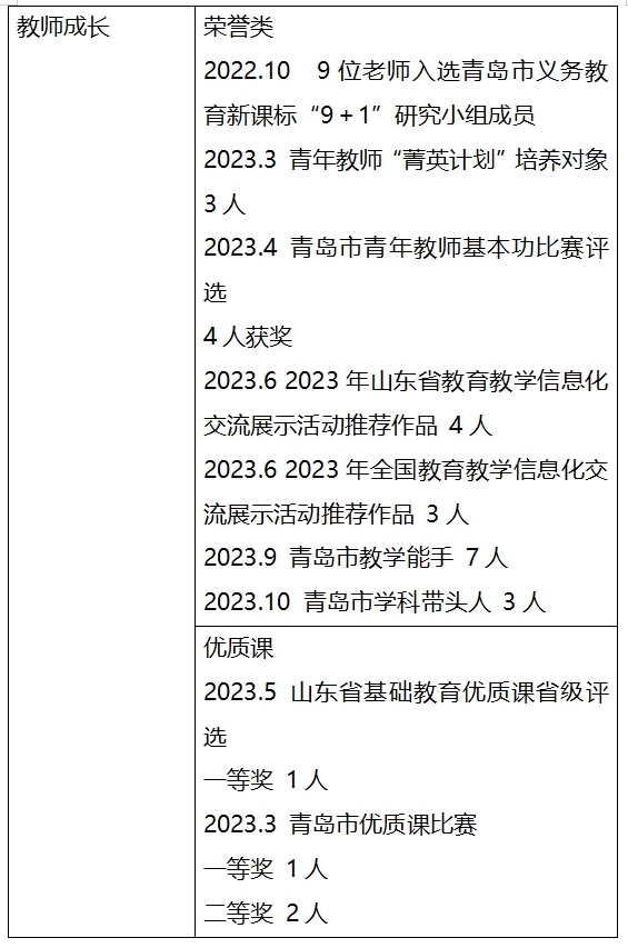 2022-2023學(xué)年青島實(shí)驗(yàn)初中教師教學(xué)成果情況統(tǒng)計(jì)
