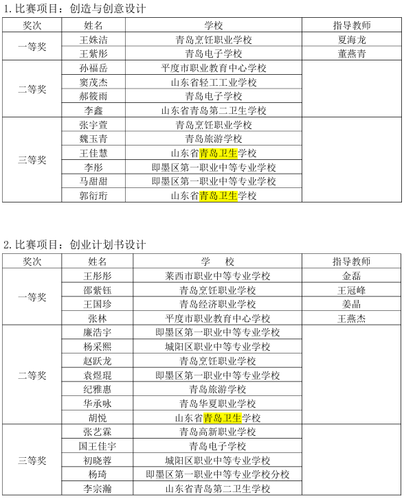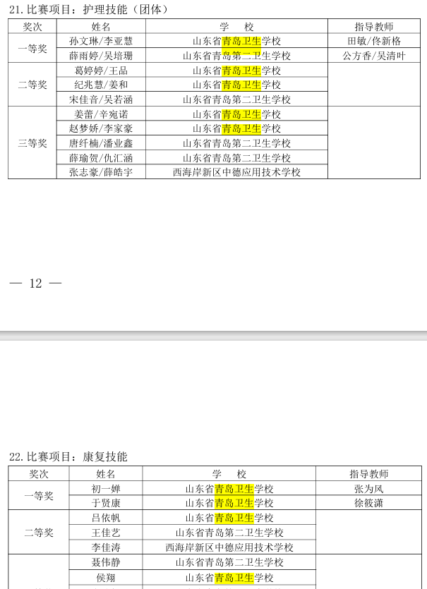 附件:2023年“工匠之星”青島市中等職業(yè)學校技能大 賽獲獎選手及輔導教師名單