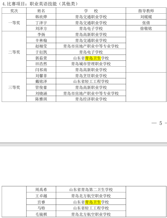 青島市教育局等5部門 關(guān)于2023年“工匠之星”青島市中等職業(yè)學校 技能大賽比賽結(jié)果的通報