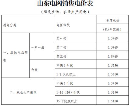 山東電網(wǎng)銷售電價表(居民生活、農(nóng)業(yè)生產(chǎn)用電)