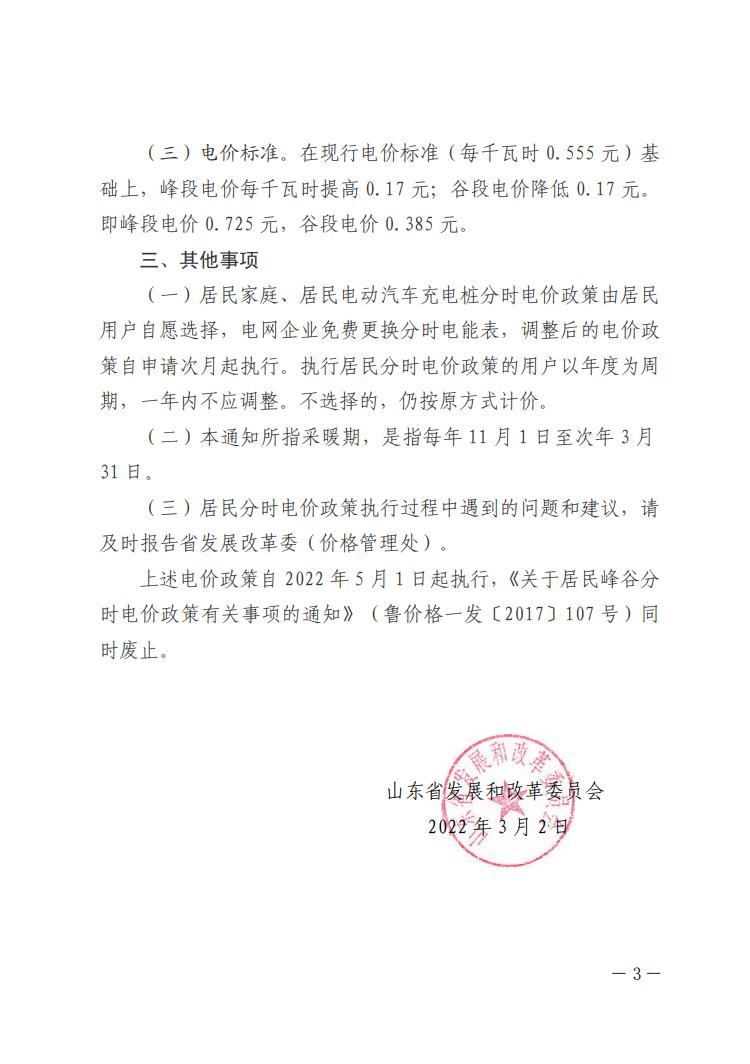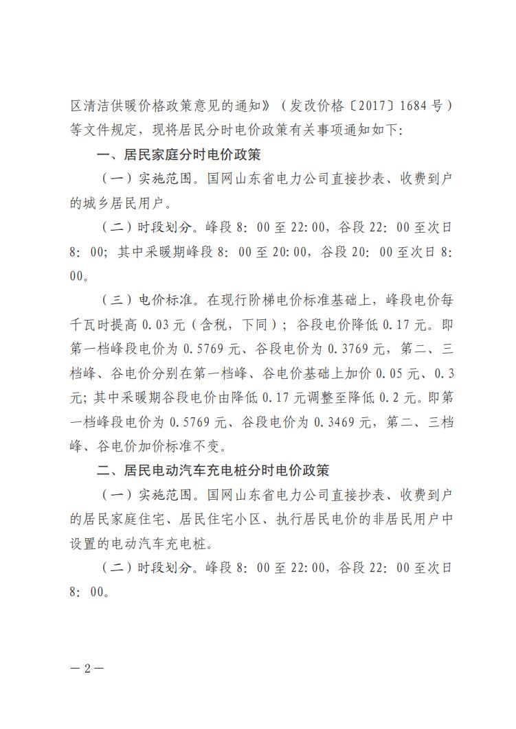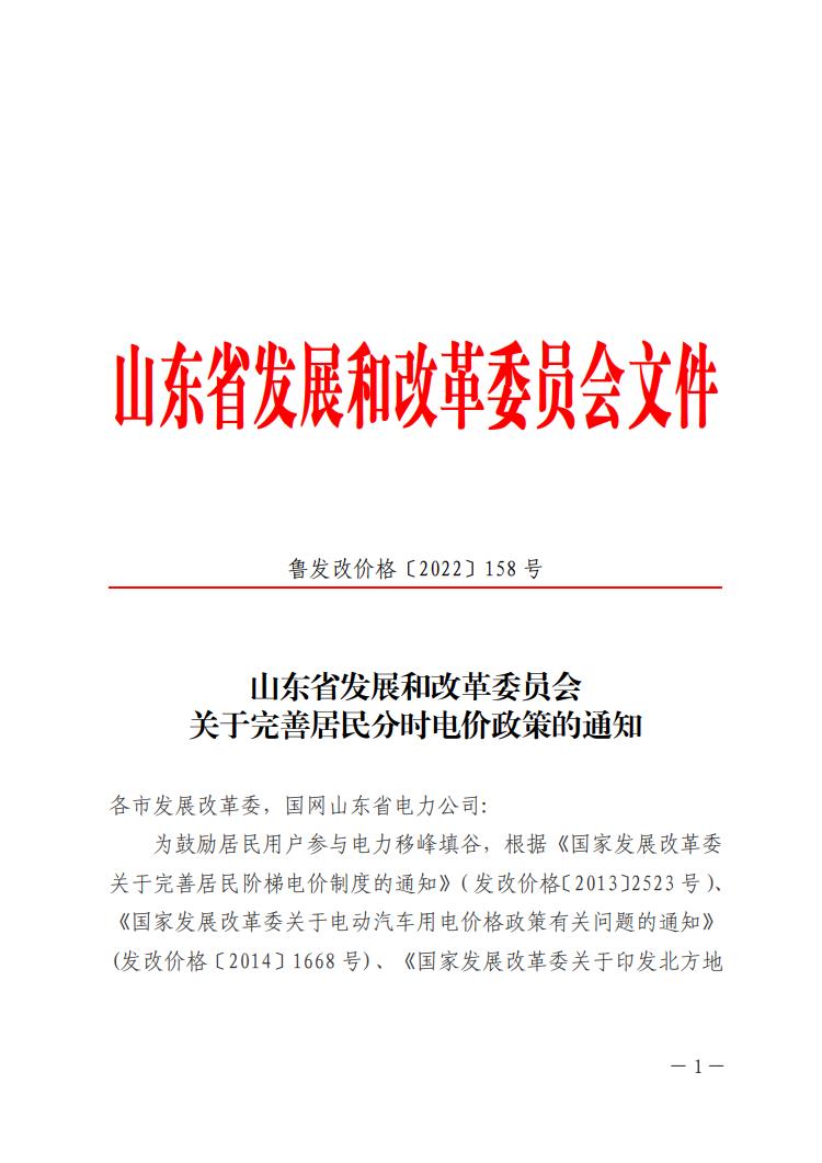 山東省發(fā)展和改革委員會關(guān)于完善居民分時電價政策的通知