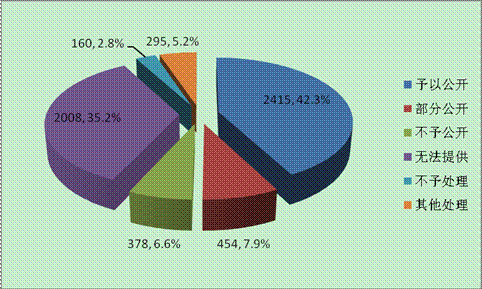 全年新收到政府信息公開申請(qǐng)5718件,比2020年增加11.1%,2020年結(jié)轉(zhuǎn)至2021年政府信息公開申請(qǐng)147件,共辦結(jié)5710件,按規(guī)定結(jié)轉(zhuǎn)至2022年繼續(xù)辦理155件。從申請(qǐng)內(nèi)容看,主要涉及土地征收、房屋拆遷等方面。從申請(qǐng)答復(fù)看,“予以公開”2415件,占42.3%;“部分公開”454件,占7.9%;“不予公開”378件,占6.6%;“無法提供”2008件,占35.2%;“不予處理”160件,占2.8%;“其他處理”295件,占5.2%。共辦理政府信息公開行政復(fù)議299件,行政訴訟233件。