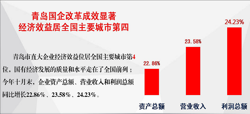 一年來,市直大企業(yè)和國資委認(rèn)真貫徹落實(shí)黨的十九大精神,按照市委、市政府“走在前列”的部署要求,提出了“瞄準(zhǔn)北上廣、再奔上青天”的工作目標(biāo),多措并舉推動(dòng)市直大企業(yè)持續(xù)健康發(fā)展。青島市直大企業(yè)經(jīng)濟(jì)效益位居全國主要城市第4位;今年十月末,企業(yè)資產(chǎn)總額、營業(yè)收入和利潤總額同比增長22.86%、23.58%、24.23%。