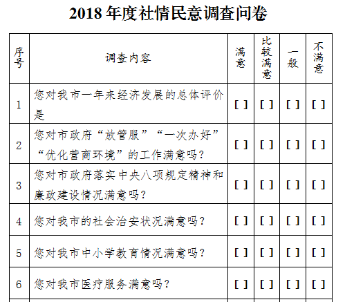 2018年度社情民意調(diào)查問卷(樣表)