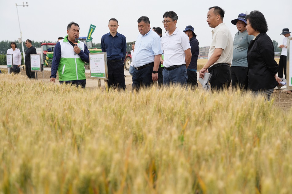 觀摩現(xiàn)場同時舉行全市小麥新品種新技術(shù)展示示范開放周活動啟動儀式。6月5日至11日各區(qū)市小麥新品種新技術(shù)展示評價基地均向社會開放,農(nóng)戶可就近實地考察、選擇良種。