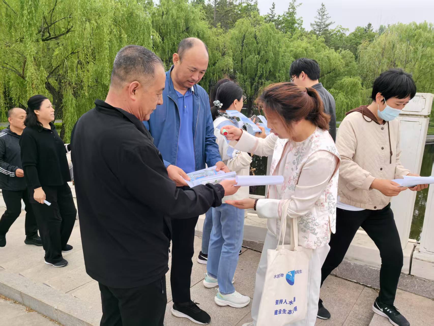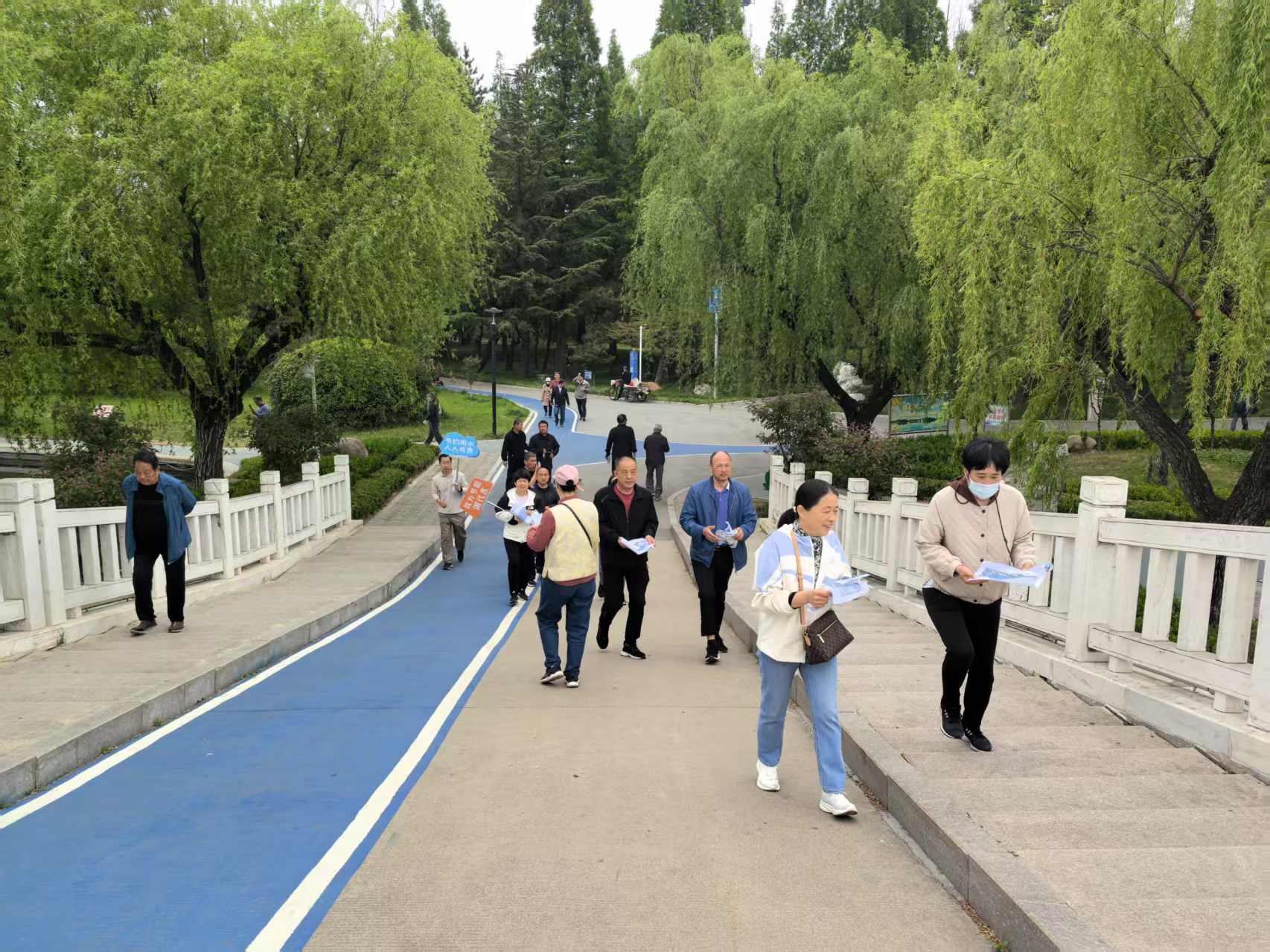 ? ? ? ? 月湖公園內(nèi)百花盛開,姹紫嫣紅,微風(fēng)吹拂柳枝,湖面泛起層層漣漪?;顒娱_始后,40余名水利機關(guān)工作人員呼吸著清新的空氣,感受著自然陽光,你追我趕,相互鼓勵、相互加油。本次健步走活動全程約4公里,沿途共設(shè)有4個打卡點,每到一個打卡點可獲取一個點贊蓋章,集齊4個蓋章才算有效走完全程。在活動沿途,還通過高舉節(jié)水標語展牌、發(fā)放節(jié)水宣傳彩頁向市民游客積極普及節(jié)水知識,還設(shè)置節(jié)水知識問答吸引更多公眾參與其中,獲取知識、增進互動,有效提高社會公眾節(jié)水知曉度。整個過程中歡聲笑語,氣氛輕松活躍。
