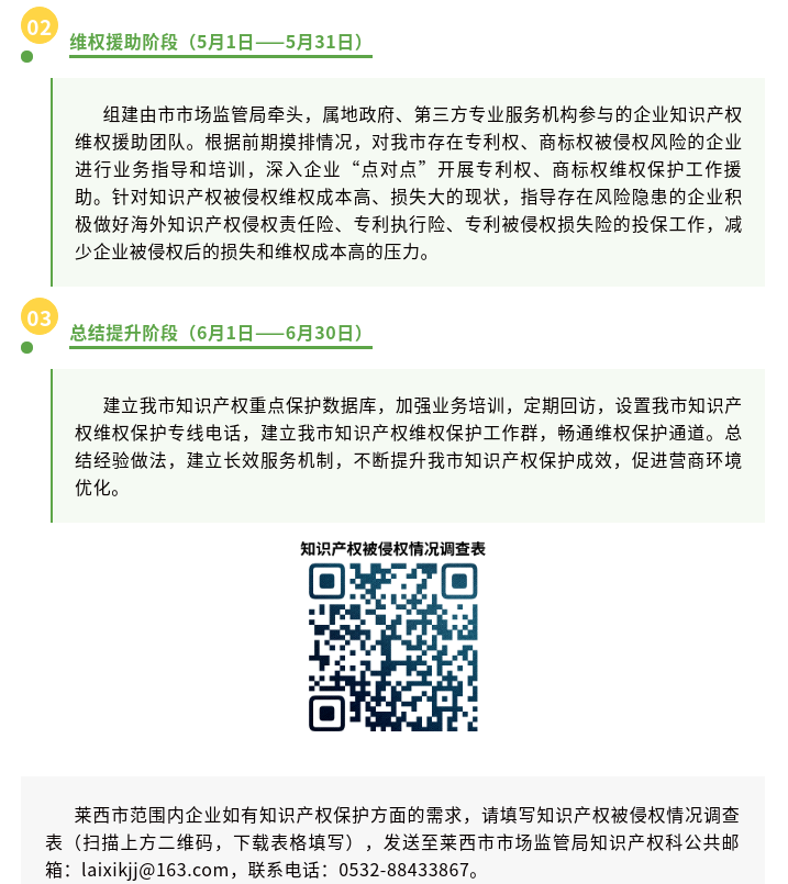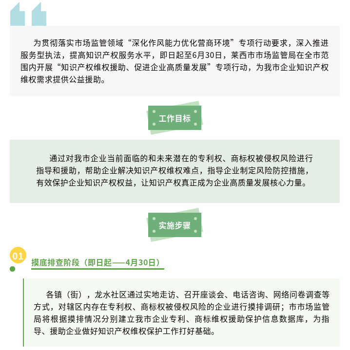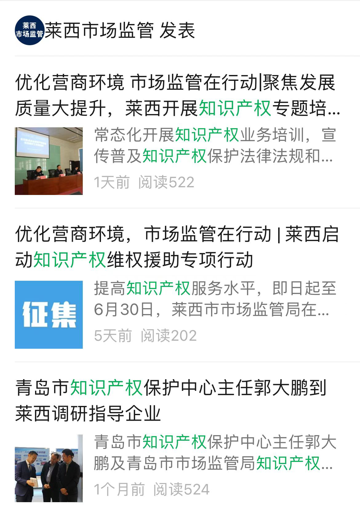 (一)開展政府開放活動創(chuàng)新宣傳模式。創(chuàng)新宣傳載體,結(jié)合政府開放月活動,系統(tǒng)開展了一系列有特色、有亮點的宣傳活動,切實提升企業(yè)知識產(chǎn)權(quán)創(chuàng)造、運用和保護宣傳成效。一是在“萊西市場監(jiān)管”微信公眾號“萊西市場監(jiān)管”萊西融媒月湖號等政務(wù)新媒體設(shè)立“優(yōu)化營商環(huán)境 市場監(jiān)管在行動”專題專欄,結(jié)合政務(wù)網(wǎng)做好知識產(chǎn)權(quán)保護、運用、服務(wù)等環(huán)節(jié)的政策解讀,向企業(yè)發(fā)布知識產(chǎn)權(quán)保護典型案例,宣傳優(yōu)勢和示范企業(yè)申報須知、知識產(chǎn)權(quán)風(fēng)險防控措施等內(nèi)容,多維度宣傳惠企政策,讓企業(yè)“聽得懂”“信得過”,讓知識產(chǎn)權(quán)惠企政策直通企業(yè),讓企業(yè)辦事少跑路、讓政策“多跑腿”,取得良好成效。二是制定“2023年知識產(chǎn)權(quán)宣傳周活動方案”,于4月26日上午9時,在月湖廣場組織開展“加強知識產(chǎn)權(quán)法治保障,有力支持全面創(chuàng)新”專項宣傳活動,通過制作宣傳橫幅、發(fā)放宣傳資料、現(xiàn)場科普咨詢等形式宣傳知識產(chǎn)權(quán)知識,確實推動企業(yè)知識產(chǎn)權(quán)發(fā)展、保護,助力我市企業(yè)高質(zhì)量發(fā)展。