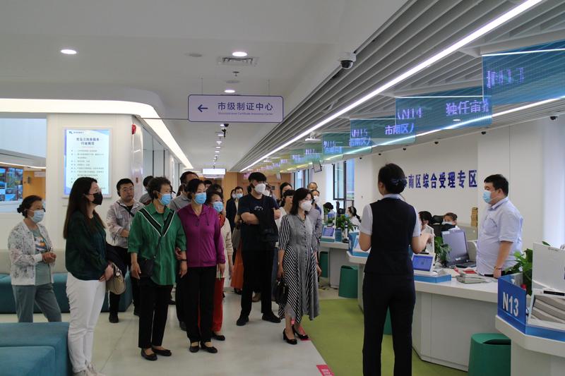活動(dòng)中,代表們參觀了青島市民中心各樓層功能分區(qū)、直觀感受“市區(qū)融合一體化”的政務(wù)服務(wù)模式,零距離體驗(yàn)“獨(dú)任審批師”“‘暖南’親清服務(wù)卡”“企業(yè)開辦一站式服務(wù)”等窗口工作流程和“暖南”審批服務(wù)舉措。細(xì)致周到的幫辦代辦和便捷高效的窗口服務(wù),給代表們留下了深刻的印象。