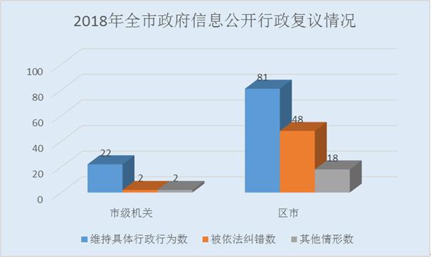 全市以信息公開為案由被提起行政復議案件173件。市級機關共26件,其中維持具體行政行為22件,糾錯2件,其他情形2件;區(qū)(市)共147件,其中維持具體行政行為81件,糾錯48件,其他情形18件。