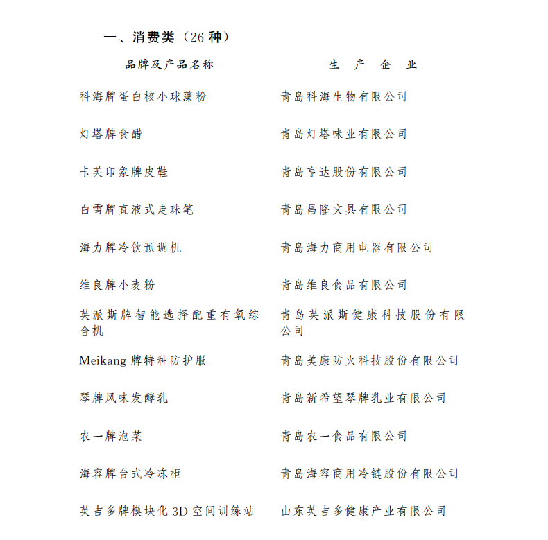 2017年,廣大企業(yè)充分發(fā)揮品牌引領(lǐng)作用,推動(dòng)制造業(yè)品牌建設(shè)高端化,以新供給提升競(jìng)爭(zhēng)發(fā)展新動(dòng)能,一批技術(shù)含量高、市場(chǎng)競(jìng)爭(zhēng)力強(qiáng)、品牌美譽(yù)度高,以及“專、精、特、新”突出的產(chǎn)品和服務(wù)脫穎而出。經(jīng)過企業(yè)申報(bào)、區(qū)(市)推薦、專家評(píng)審以及消費(fèi)者投票,市政府同意青島科海生物有限公司的“科海牌蛋白核小球藻粉”等64種產(chǎn)品、青島盛世奧海文化產(chǎn)業(yè)股份有限公司的“大牌成就品牌”等11個(gè)服務(wù)品牌,新認(rèn)定為“青島名牌”,現(xiàn)予以公布。