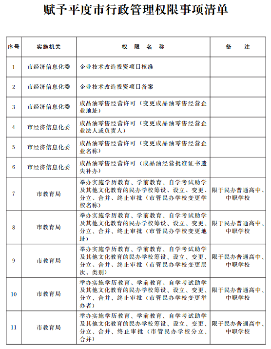 根據(jù)平度市經(jīng)濟(jì)社會發(fā)展需要,以提速增效為出發(fā)點,將有利于提高行政管理效率、促進(jìn)區(qū)域經(jīng)濟(jì)發(fā)展的市級行政管理權(quán)限賦予平度市行使,形成權(quán)責(zé)明晰、運轉(zhuǎn)高效、監(jiān)督有力的行政管理體系。