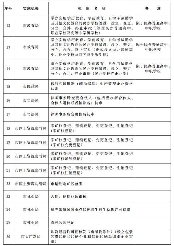 將由市級有關(guān)部門行使的49項管理權(quán)限賦予平度市實施(詳見附件)。下放的事項權(quán)限(不含跨區(qū)域項目審批管理權(quán)限)均由平度市行政審批機(jī)關(guān)在平度市行政區(qū)域內(nèi)行使。