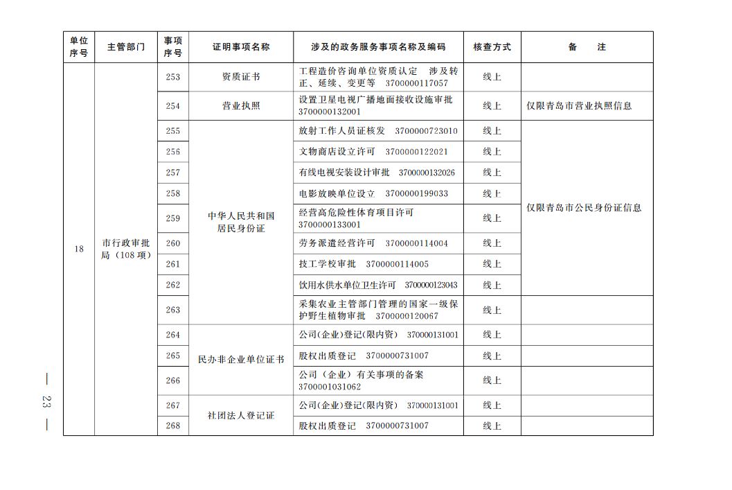根據(jù)《國(guó)務(wù)院辦公廳關(guān)于全面推行證明事項(xiàng)和涉企經(jīng)營(yíng)許可事項(xiàng)告知承諾制的指導(dǎo)意見(jiàn)》(國(guó)辦發(fā)〔2020〕42號(hào))、《山東省人民政府辦公廳關(guān)于印發(fā)山東省全面推行證明事項(xiàng)告知承諾制實(shí)施方案的通知》(魯政辦發(fā)〔2020〕29號(hào))要求,我市全面推行證明事項(xiàng)告知承諾制。經(jīng)審核確認(rèn),現(xiàn)將《青島市市級(jí)證明事項(xiàng)告知承諾制清單》予以公布。清單將根據(jù)法律、法規(guī)、國(guó)務(wù)院決定及工作實(shí)際進(jìn)行動(dòng)態(tài)調(diào)整。