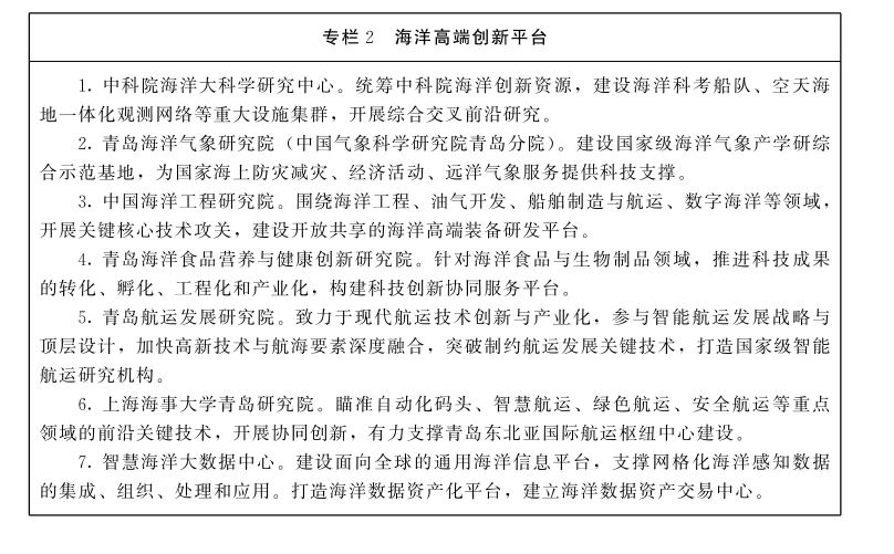5.海洋科技創(chuàng)新及成果孵化帶。聚焦海洋、電子信息、智能制造等重點領(lǐng)域,依托嶗山國際創(chuàng)新園、李滄院士港、藍谷等科技園區(qū),加快科技成果轉(zhuǎn)化和產(chǎn)業(yè)孵化,建設(shè)高水平科技企業(yè)孵化器和加速器,建設(shè)跨區(qū)域、跨領(lǐng)域的科技創(chuàng)新及成果孵化帶,打造未來產(chǎn)業(yè)集聚區(qū)。
