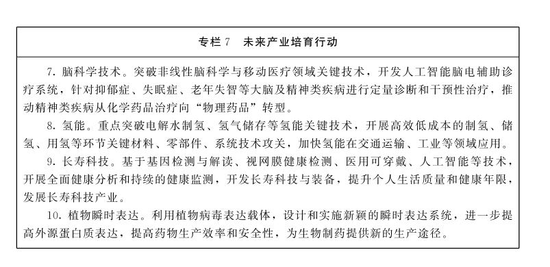 加強支撐未來產(chǎn)業(yè)的突破性和顛覆性技術(shù)研發(fā),聚焦類腦智能、基因技術(shù)、未來網(wǎng)絡(luò)、深??仗扉_發(fā)、氫能與儲能等前沿科技和產(chǎn)業(yè)變革領(lǐng)域,培育中子技術(shù)、下一代顯示、軟磁材料、新型光存儲、腦科學(xué)等一批未來產(chǎn)業(yè)。支持高校院所、領(lǐng)軍企業(yè)和重大科技基礎(chǔ)設(shè)施等優(yōu)勢科技創(chuàng)新資源,建設(shè)未來產(chǎn)業(yè)技術(shù)研究中心、研究院等新型研發(fā)機構(gòu),創(chuàng)新體制機制,強化前沿技術(shù)多路徑探索、交叉融合和顛覆性技術(shù)源頭供給。