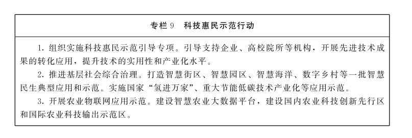 2.推進基層社會綜合治理。打造智慧街區(qū)、智慧園區(qū)、智慧海洋、數(shù)字鄉(xiāng)村等一批智慧民生典型應(yīng)用和示范。實施國家“氫進萬家”、重大節(jié)能低碳技術(shù)產(chǎn)業(yè)化等應(yīng)用示范。