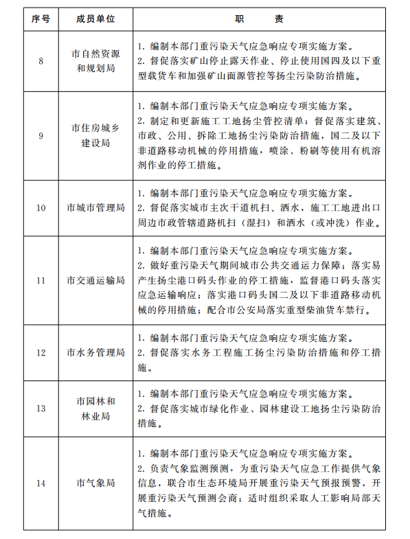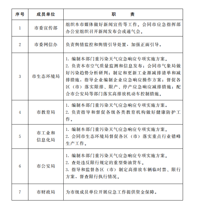 附件:青島市重污染天氣專(zhuān)項(xiàng)應(yīng)急指揮部各成員單位職責(zé)分工表