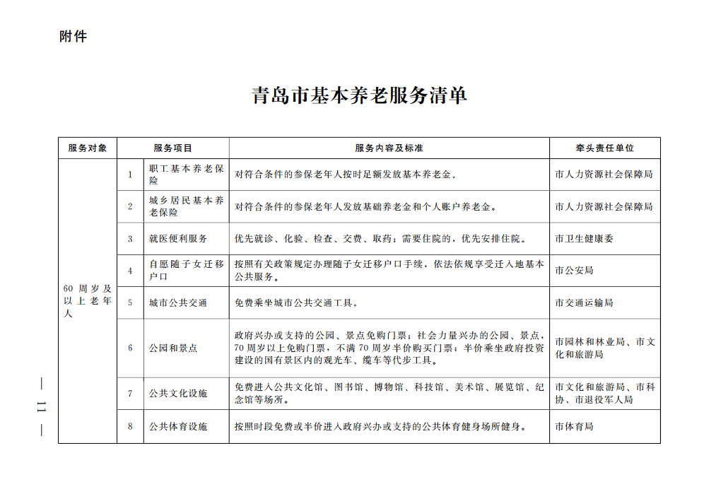 27.營造社會氛圍。強化政策宣傳解讀,及時公開基本養(yǎng)老服務信息。凝聚社會共識,鼓勵引導企業(yè)、社會組織、慈善資源、個人等力量為基本養(yǎng)老服務提供支持。強化改革創(chuàng)新,統(tǒng)籌要素資源,打造青島特色養(yǎng)老服務模式,推動養(yǎng)老服務高質量發(fā)展。(市民政局負責)