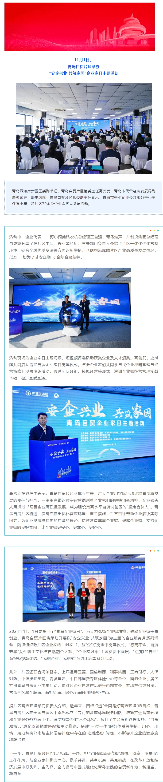 青島自貿(mào)片區(qū)舉辦“安企興業(yè) 共筑家園”企業(yè)家日主題活動