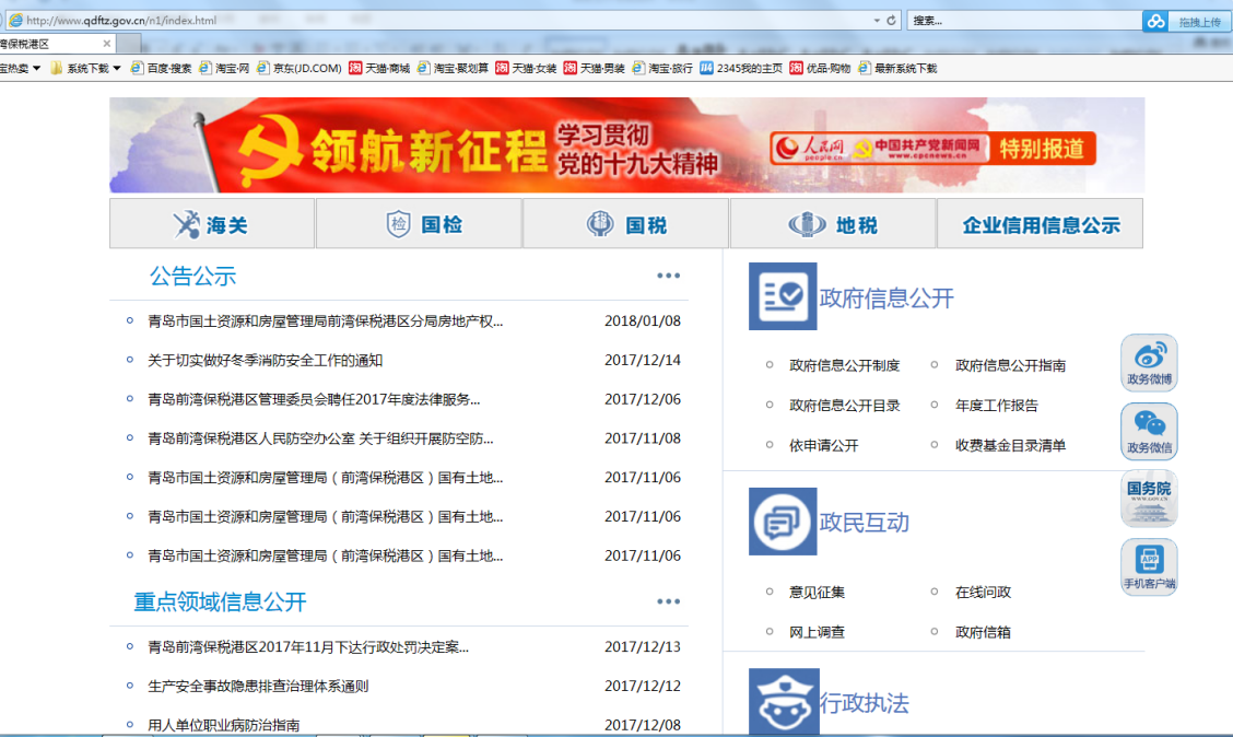 完善政務(wù)網(wǎng)站建設(shè)。首先根據(jù)國務(wù)院及省市文件的要求,將功能區(qū)網(wǎng)站全部整合到管委政務(wù)網(wǎng)站,并完整保留原網(wǎng)站數(shù)據(jù)信息。其次,在網(wǎng)站欄目在原網(wǎng)站的基礎(chǔ)上進(jìn)一步改版優(yōu)化,共設(shè)立新聞、政策法規(guī)、政務(wù)公開、網(wǎng)上服務(wù)及公眾參與五大板塊,在新聞欄目中增添國務(wù)院及省事相關(guān)要聞動態(tài);整合出口加工區(qū)相關(guān)數(shù)據(jù),建立完成青島出口加工區(qū)及西海岸出口加工區(qū)模塊。