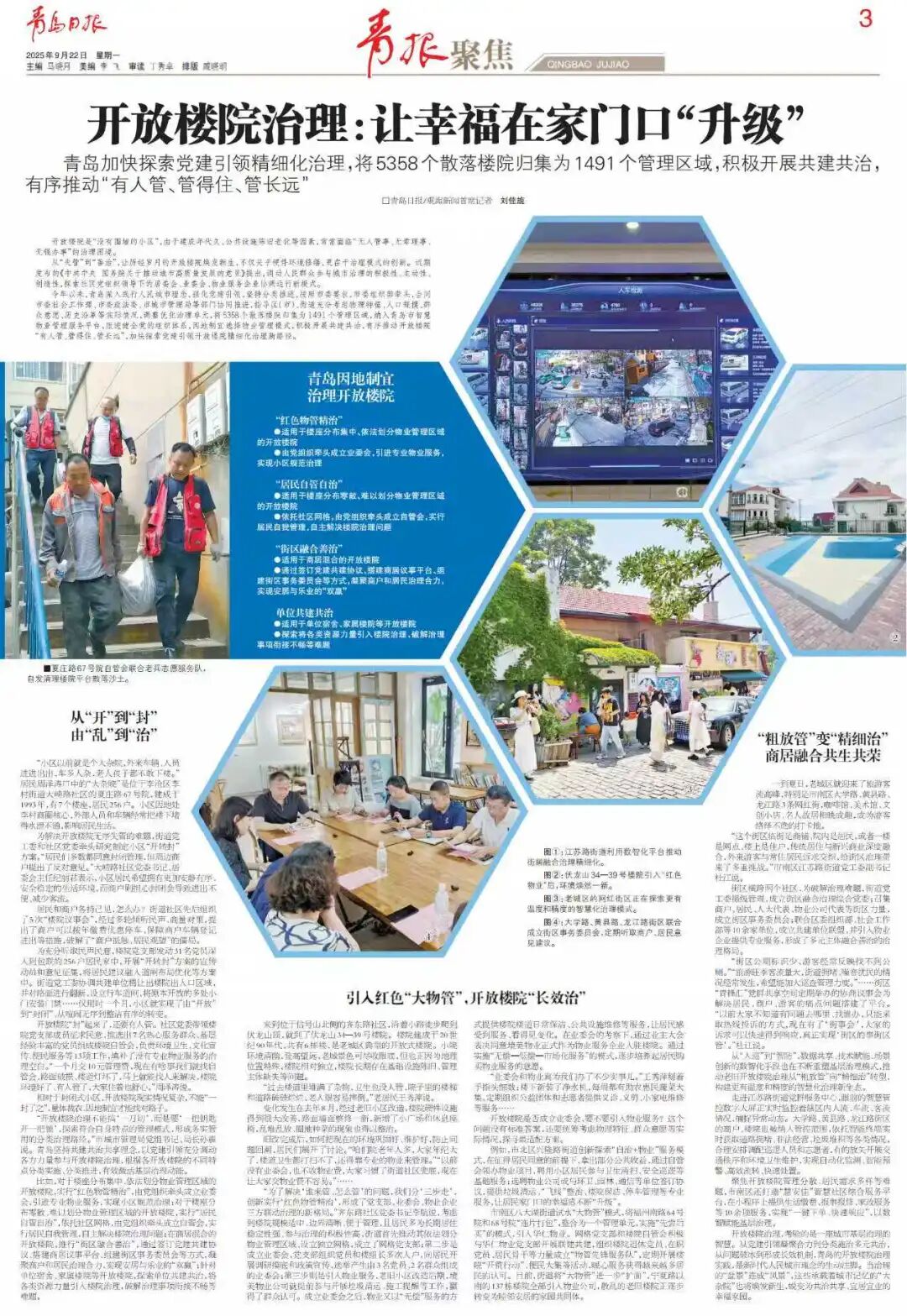 今年以來,青島深入踐行人民城市理念,強化黨建引領,堅持分類推進,按照市委要求,市委組織部牽頭,會同市委社會工作部、市委政法委、市城市管理局等部門協(xié)同推進,指導區(qū)(市)、街道充分考慮物理特征、人口規(guī)模、群眾意愿、歷史沿革等實際情況,調整優(yōu)化治理單元,將5358個散落樓院歸集為1491個管理區(qū)域,納入青島市智慧物業(yè)管理服務平臺,跟進健全黨的組織體系,因地制宜選擇物業(yè)管理模式,積極開展共建共治,有序推動開放樓院“有人管、管得住、管長遠”,加快探索黨建引領開放樓院精細化治理新路徑。
