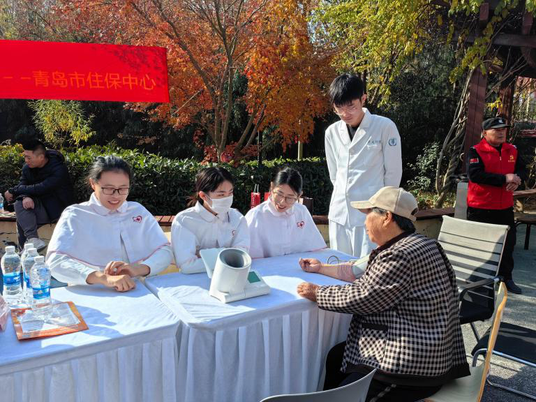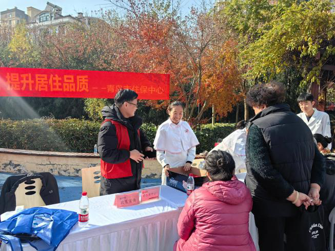 本次活動特別邀請了青醫(yī)附院的志愿者組建義診團(tuán)隊。志愿者們在現(xiàn)場為住戶提供血壓測量、血糖檢測及健康保健咨詢服務(wù),同時針對行動不便的獨(dú)居老人,開展上門義診服務(wù),讓老人們足不出戶就能及時了解自身健康狀況,感受到多方的貼心關(guān)懷。