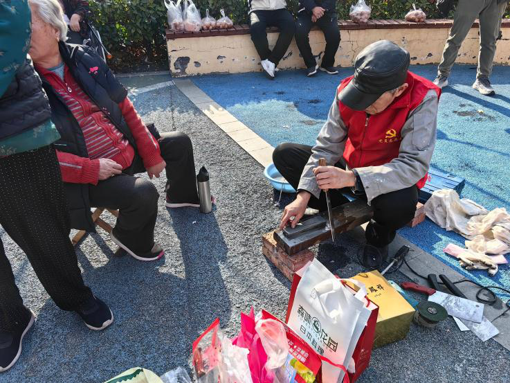 為切實(shí)解決居民日常生活中的實(shí)際需求,活動設(shè)置了多個便民服務(wù)攤位。便民維修區(qū),來自各單位的志愿者組成維修隊伍,免費(fèi)為住戶檢修、維修各類小家電,用專業(yè)技能為居民排憂解難;生活惠民區(qū),由青鐵智管公司補(bǔ)貼差價推出的低價新鮮蔬菜、雞蛋售賣攤位深受住戶青睞,將實(shí)惠直接送到居民手中;愛心磨菜刀攤位前更是排起了長隊,志愿者師傅憑借精湛的磨刀技藝,讓居民家中的舊菜刀 “重?zé)ㄤh芒”,贏得一致好評。
