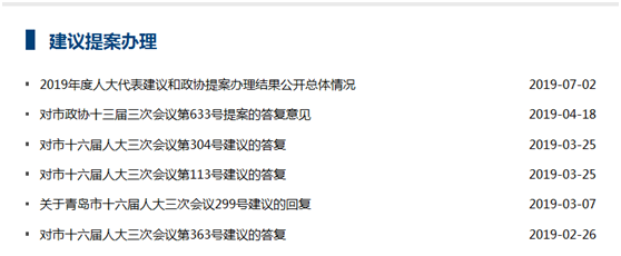 在人大代表建議和政協(xié)提案辦理結(jié)果公開(kāi)方面,2019年市財(cái)政局通過(guò)青島政務(wù)網(wǎng)、本部門(mén)網(wǎng)站等渠道,向社會(huì)公開(kāi)本部門(mén)牽頭辦理的建議提案原文及答復(fù)意見(jiàn)5件。
