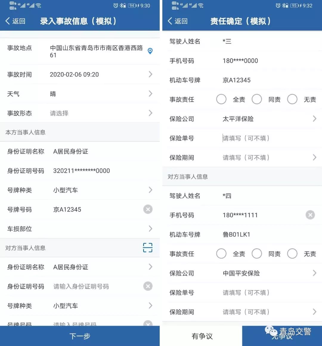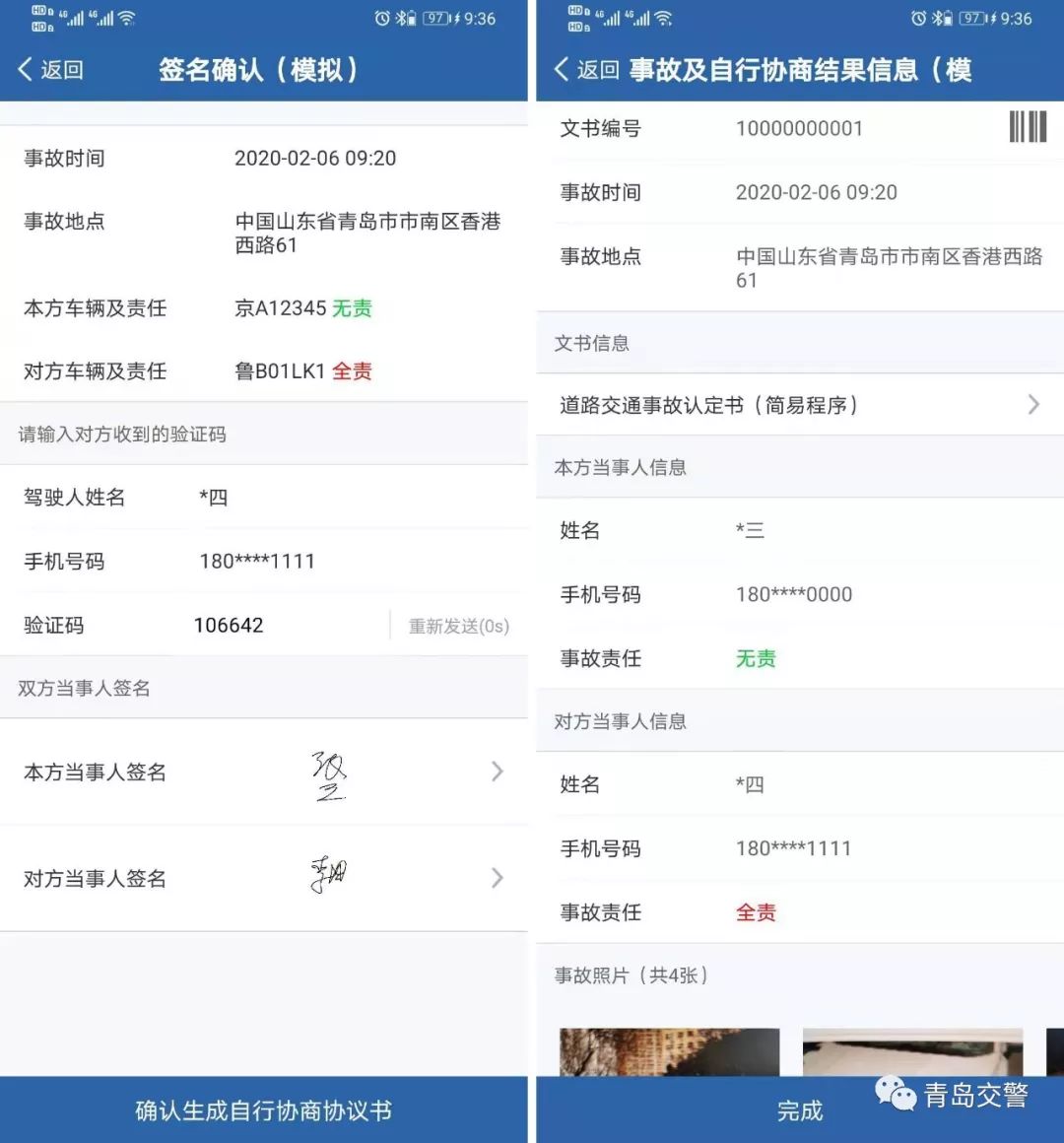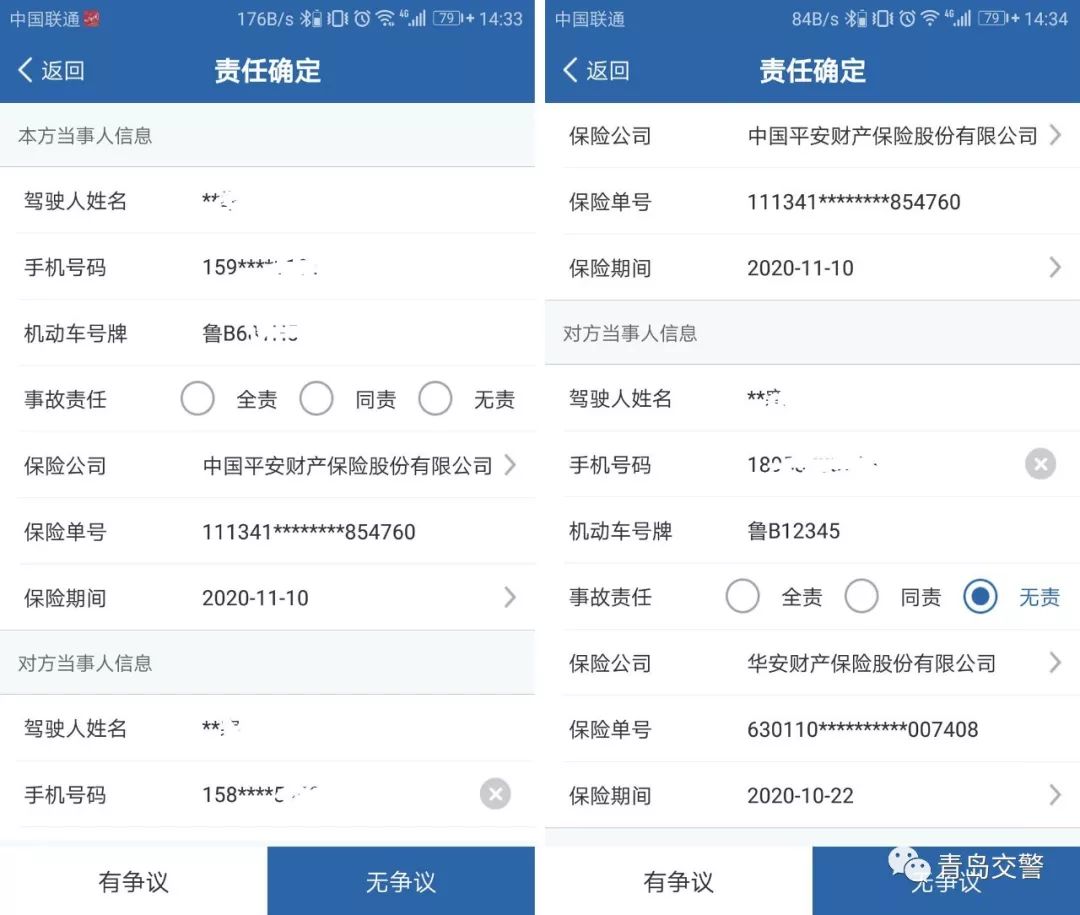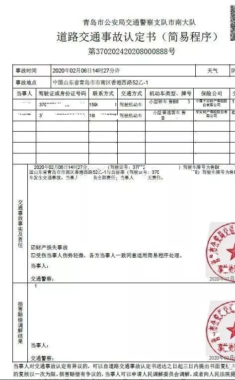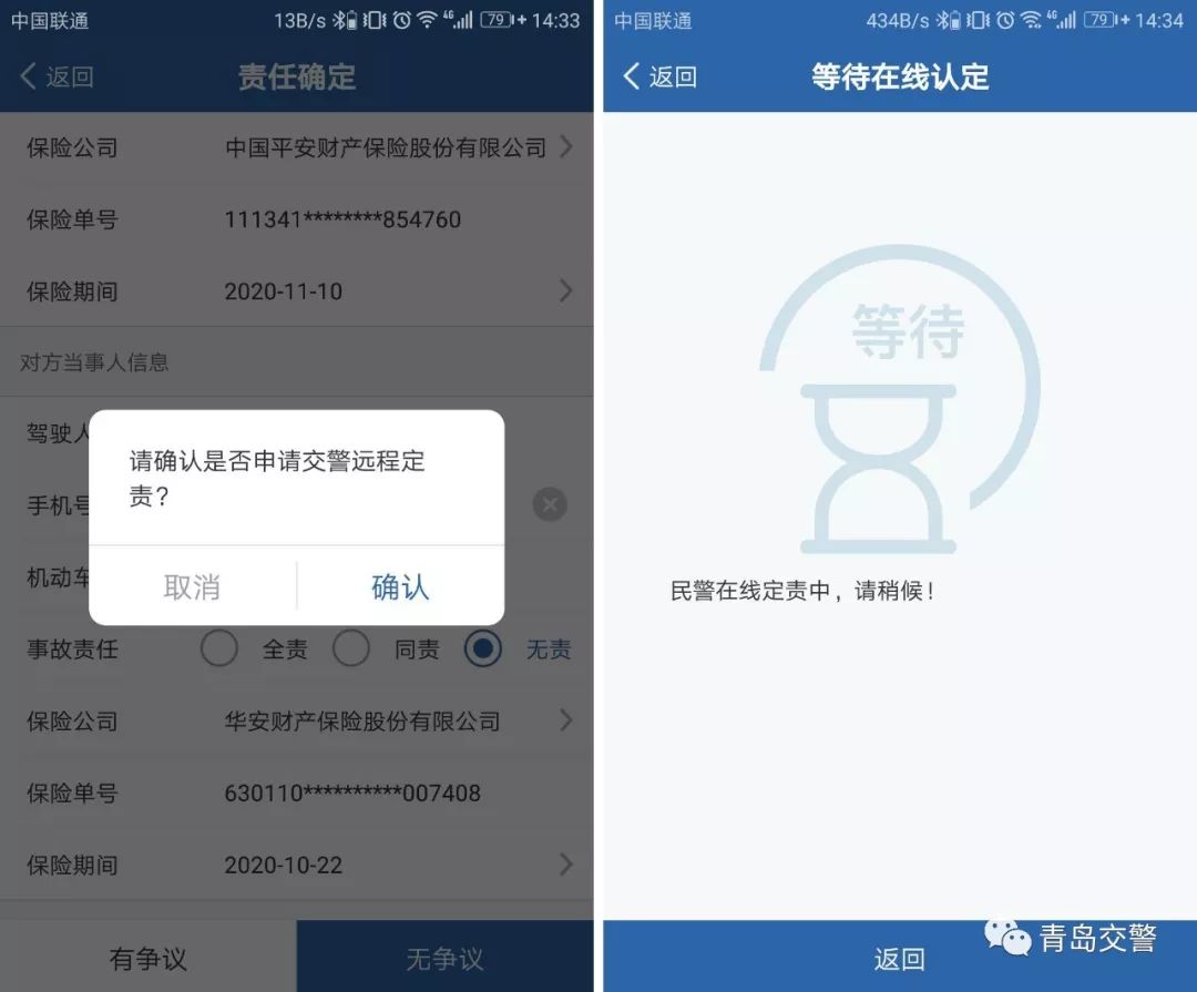 4、根據(jù)《青島市道路交通事故快速處理辦法》,事實(shí)清楚、責(zé)任明確、雙方無爭議,且單車車損不超過5000元的,可以選擇“自行協(xié)商”處理,生成《自行協(xié)商協(xié)議書》,直接聯(lián)系保險公司理賠。雙方對事實(shí)成因或責(zé)任人有爭議,或單車車損超過5000元的,請您選擇“在線認(rèn)定”,我們的事故處理民警通過后臺進(jìn)行遠(yuǎn)程判定責(zé)任。