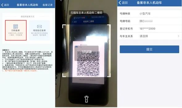 【備案方式:掃碼備案】對于個人名下的待備案機動車,車主用戶應(yīng)當?shù)卿洝敖还?2123”APP,生成待備案機動車二維碼;對于待備案機動車為單位名下的,單位用戶需登錄互聯(lián)網(wǎng)平臺后選擇待備案機動車生成二維碼。二維碼生成后,需要備案該機動車的用戶使用“交管12123”APP掃碼。用戶掃碼驗證通過后,選擇與車主關(guān)系,提交備案申請。