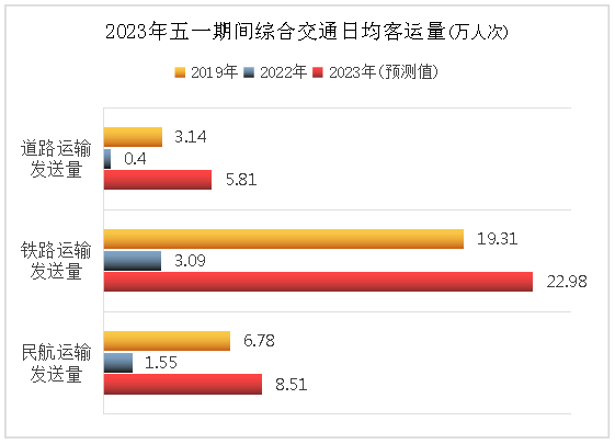 鐵路運(yùn)輸。預(yù)計(jì)鐵路運(yùn)輸?shù)桨l(fā)旅客114.89萬(wàn)人次,日均22.98萬(wàn)人次,同比增長(zhǎng)643.12%,較2019年增長(zhǎng)18.99%。
