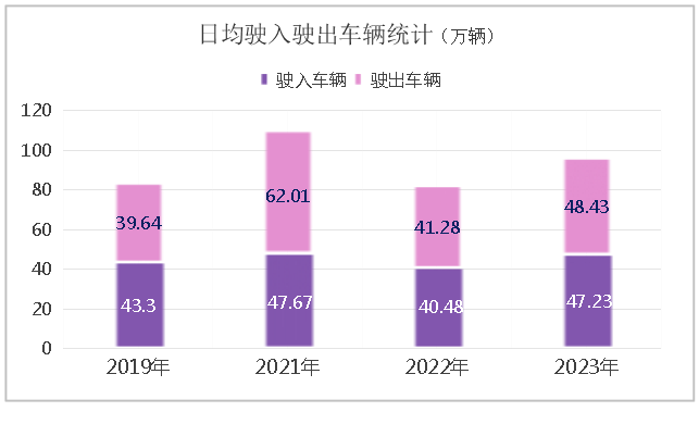 (三)自駕車輛和貨運(yùn)車輛通行率上升,高速公路通行繁忙。據(jù)統(tǒng)計(jì),租車自駕出行同比增長(zhǎng)超80%,加之假期內(nèi)高速公路小客車免費(fèi)通行,私家車自駕出游需求將進(jìn)一步大幅攀升。同時(shí)隨著道路運(yùn)輸行業(yè)市場(chǎng)日漸活躍,貨運(yùn)車輛出行率預(yù)計(jì)也會(huì)有較大增長(zhǎng),多種交通流交織疊加特點(diǎn)凸顯。預(yù)計(jì)青島轄區(qū)高速公路駛?cè)腭偝鲕囕v共計(jì)478.29萬(wàn)輛,日均 95.66萬(wàn)輛,同比增長(zhǎng)17.00%,較2019年增長(zhǎng)15.33%。