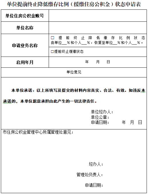 2.單位提前終止降低繳存比例(緩繳住房公積金)狀態(tài)申請表
