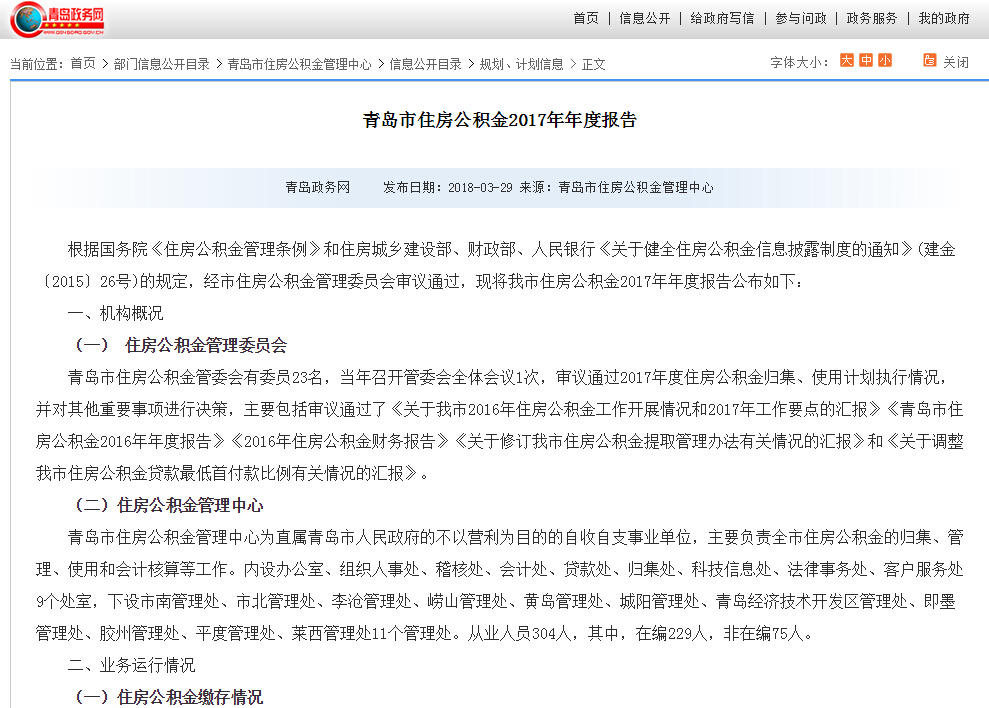 按照上級有關(guān)文件要求,及時編制完成《青島市住房公積金2017年年度報告》及相關(guān)解讀文件,并在青島市政務(wù)網(wǎng)、青島市住房公積金官方網(wǎng)站和“青島公積金”微信公眾號進(jìn)行發(fā)布。明確住房公積金管理運(yùn)行信息發(fā)布要求,于每季度初通過青島政務(wù)網(wǎng)、青島市住房公積金官方網(wǎng)站發(fā)布上一季度全市住房公積金繳存、提取、貸款、財務(wù)以及風(fēng)險狀況等公積金管理運(yùn)行信息。