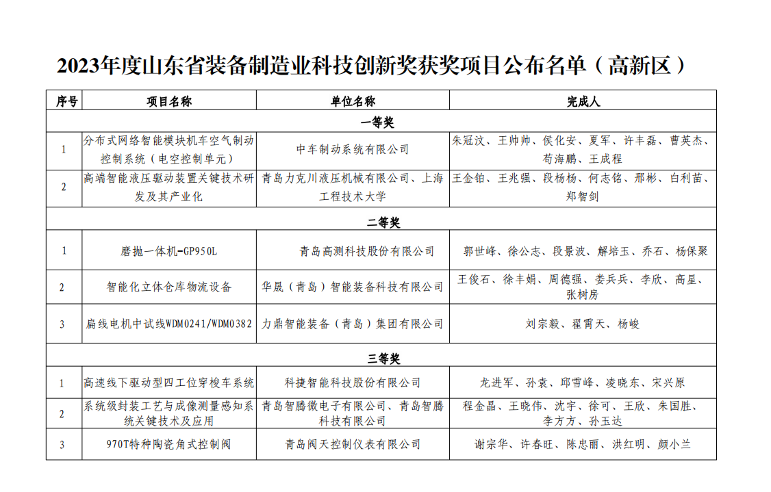 近日,第四屆山東省裝備制造業(yè)科技創(chuàng)新獎(jiǎng)獲獎(jiǎng)項(xiàng)目名單公布,青島高新區(qū)共有8個(gè)項(xiàng)目入選,占全市獲獎(jiǎng)項(xiàng)目的30%。青島高新區(qū)經(jīng)濟(jì)發(fā)展部榮獲“優(yōu)秀組織單位”榮譽(yù)稱(chēng)號(hào)?!吧綎|省裝備制造業(yè)科技創(chuàng)新獎(jiǎng)”的設(shè)立,旨在激勵(lì)全省裝備制造行業(yè)科技創(chuàng)新的積極性和主動(dòng)性,促進(jìn)裝備制造行業(yè)技術(shù)進(jìn)步和產(chǎn)品創(chuàng)新。此次青島高新區(qū)8個(gè)項(xiàng)目獲獎(jiǎng),既是對(duì)園區(qū)企業(yè)長(zhǎng)期堅(jiān)持高質(zhì)量發(fā)展理念的高度認(rèn)可,也是對(duì)高新區(qū)堅(jiān)定不移走好創(chuàng)新驅(qū)動(dòng)發(fā)展之路的充分肯定。