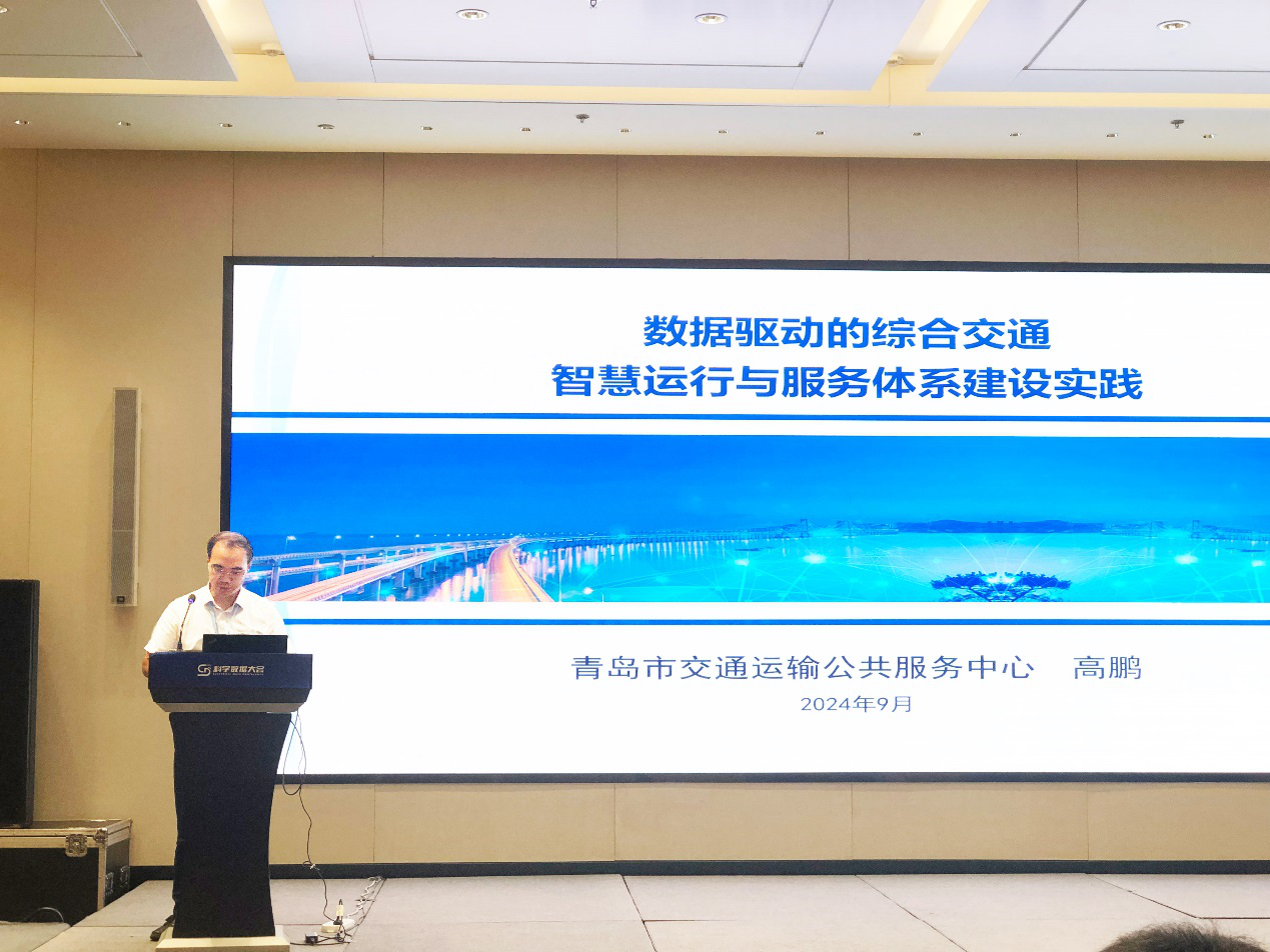 市交通運輸局公共服務中心高鵬同志以“數(shù)據(jù)驅(qū)動的綜合交通智慧運行與服務體系建設實踐”為題作報告,介紹了近年來青島市在交通運輸數(shù)字化轉(zhuǎn)型、交通強國綜合交通大數(shù)據(jù)專項試點任務、“交融智慧”海陸空鐵郵智慧運行與服務體系建設等方面所開展的一系列工作,著力面向國內(nèi)同類型城市宣傳、推廣數(shù)字化轉(zhuǎn)型“青島模式”。