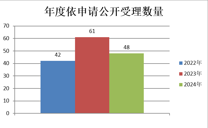 (三)依申請公開方面。進一步完善依申請公開辦理系統(tǒng),制定答復規(guī)范,加強主動溝通,優(yōu)化依申請公開工作流程,耐心接待現(xiàn)場申請群眾,主動與申請事項較多、內(nèi)容不清晰的申請人電話溝通,分類梳理申請公開的內(nèi)容,了解申請人的意圖想法,對于不予受理或者應當通過其他途徑獲取信息的,認真解釋相關法律規(guī)定,取得申請人理解。熱情接待現(xiàn)場查看信息群眾,耐心解釋申請事項依據(jù)。2024年共收到依申請公開48件,其中經(jīng)電話溝通后,申請人撤回申請7件;按期辦結(jié)41件;轉(zhuǎn)下年度繼續(xù)辦理3件。