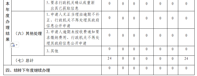 (七)無(wú)其他有關(guān)文件專門要求通過(guò)政府信息公開(kāi)工作年度報(bào)告予以報(bào)告的事項(xiàng)。
