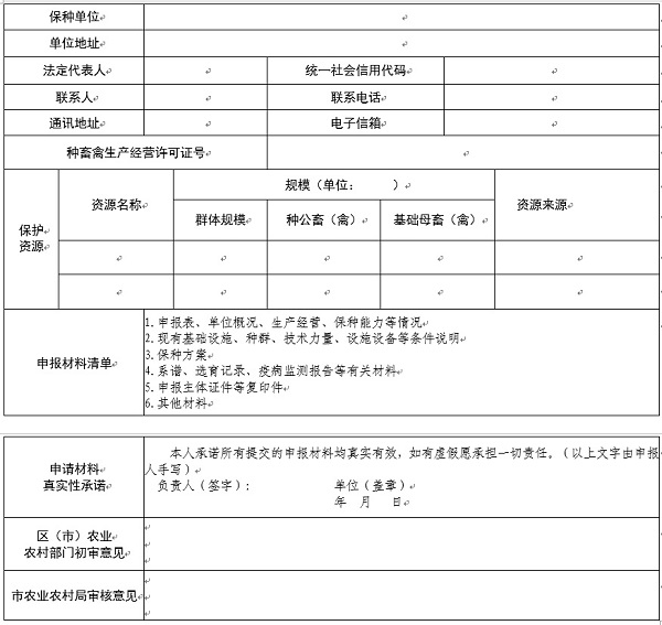 (一)青島市畜禽遺傳資源保種場申報表(見附件1);