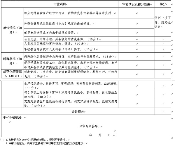 青島市畜禽遺傳資源保種場現(xiàn)場審驗表