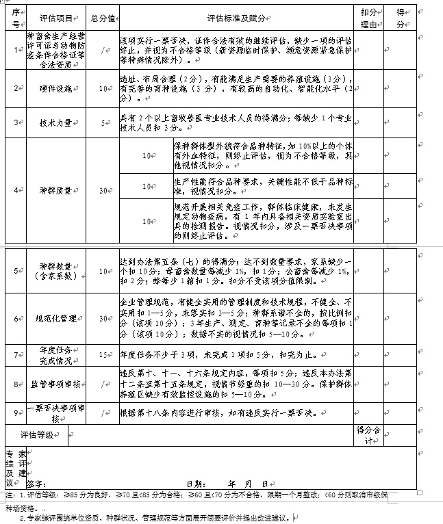 第二十條?市農(nóng)業(yè)農(nóng)村局根據(jù)保種工作安排,下發(fā)年度考評通知,明確考評要求。保種單位根據(jù)考評表(見附件3)準備相關(guān)材料。