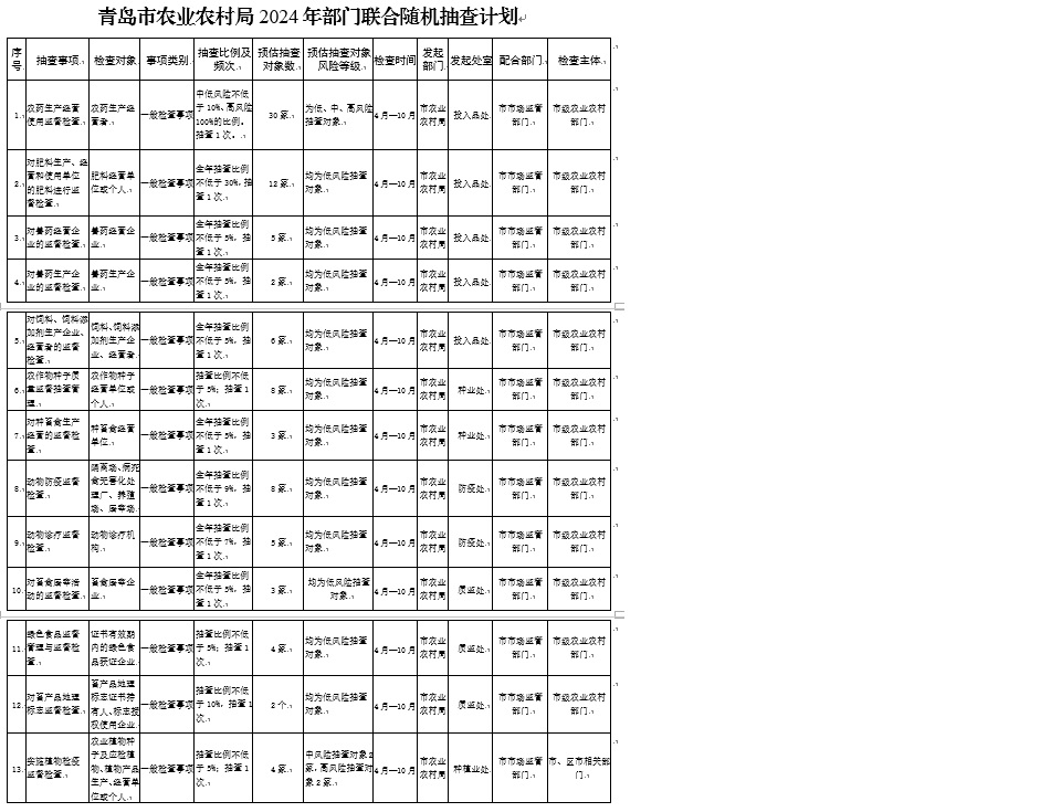 2.青島市農(nóng)業(yè)農(nóng)村局2024年部門聯(lián)合隨機抽查計劃
